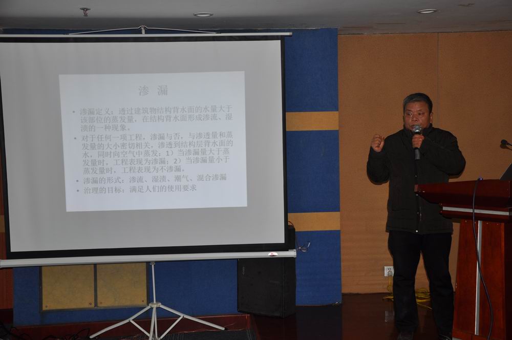本次研討會(huì)由河南省建筑防水協(xié)會(huì)會(huì)長(zhǎng)陳寶貴、秘書長(zhǎng)王文立等組成的授課專家團(tuán)就地下工程滲漏治理、筋骨式結(jié)構(gòu)自防水體系不開挖滲漏治理和屋面防排水回收應(yīng)用等技術(shù)理論原理進(jìn)行了深入淺出的講解示范,并現(xiàn)場(chǎng)針對(duì)滲漏問題對(duì)企業(yè)單位進(jìn)行答疑解惑,得到了良好的授課效果。
