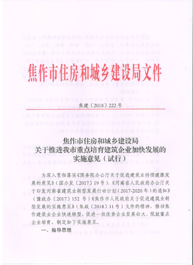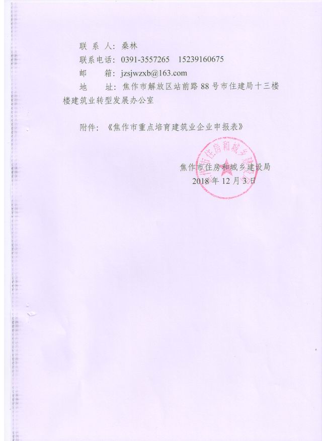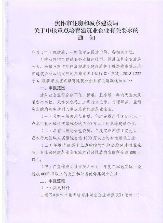 焦作市住房和城鄉(xiāng)建設(shè)局關(guān)于申報重點培育建筑業(yè)企業(yè)有關(guān)要求的通知