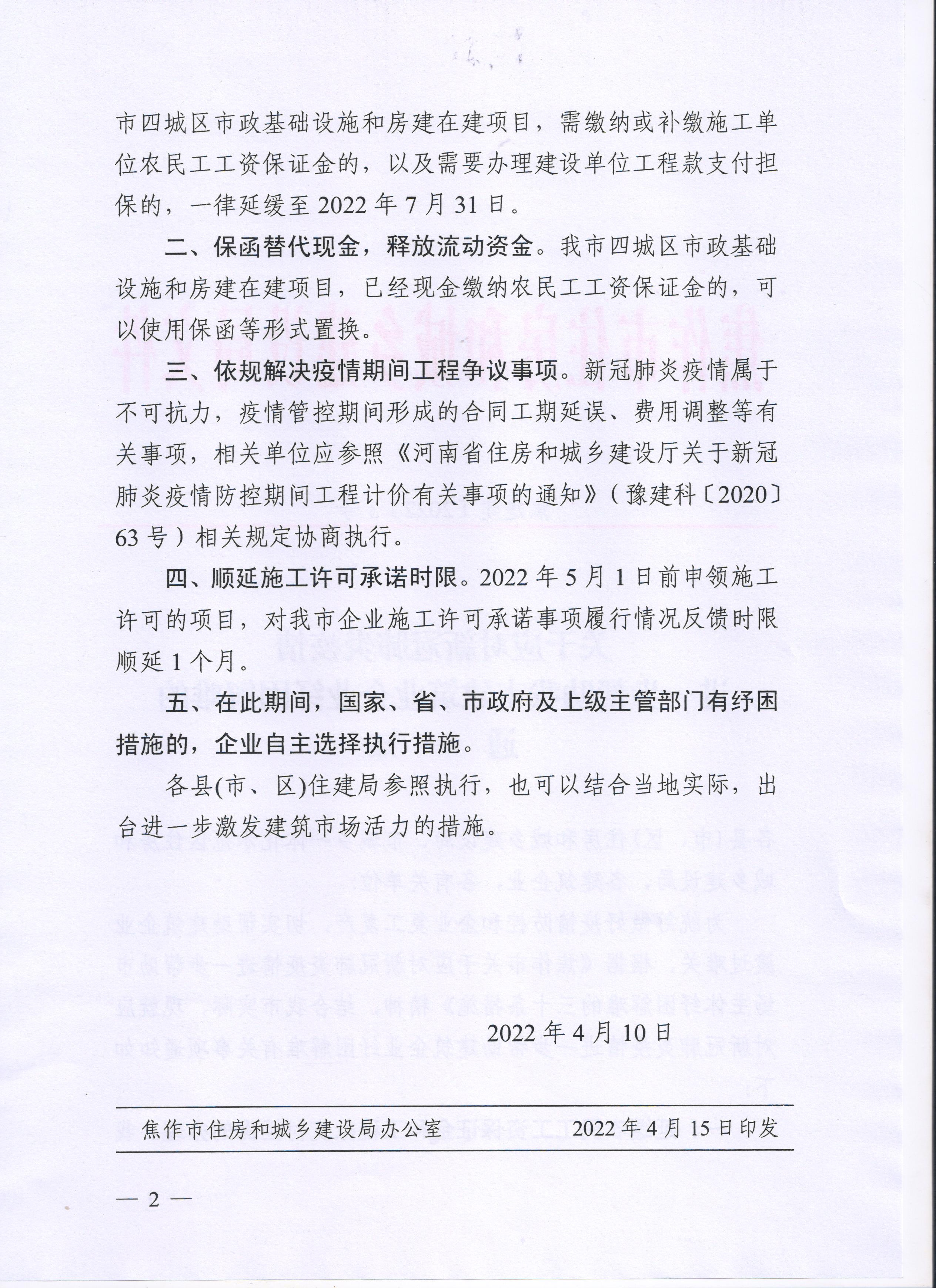 焦作市住房和城鄉(xiāng)建設(shè)局關(guān)于應(yīng)對新冠肺炎疫情進一步幫助我市建筑業(yè)企業(yè)紓困解難的通知