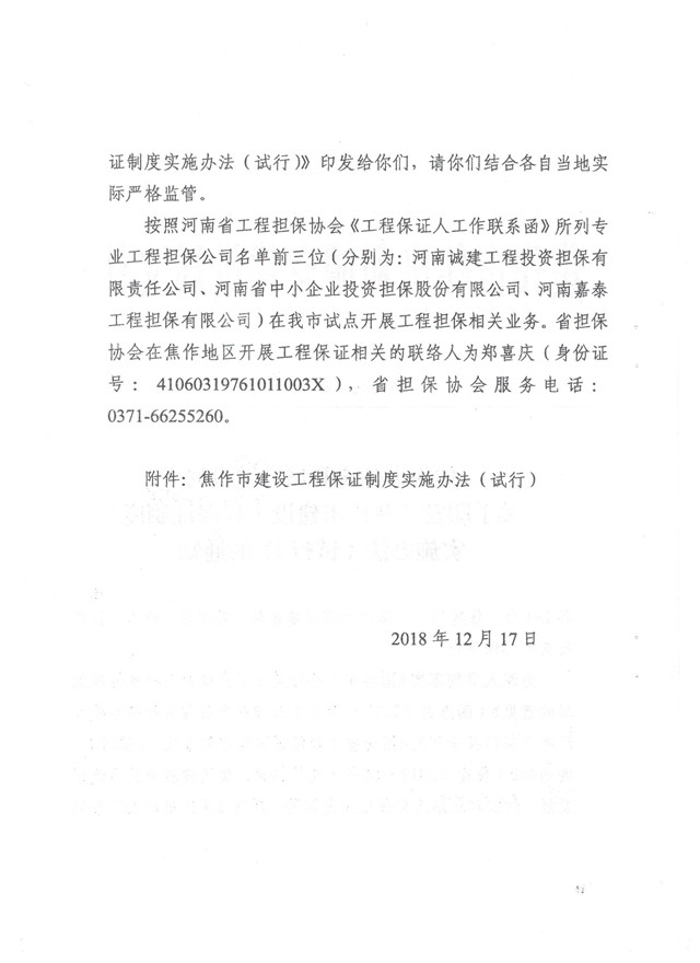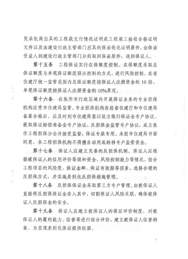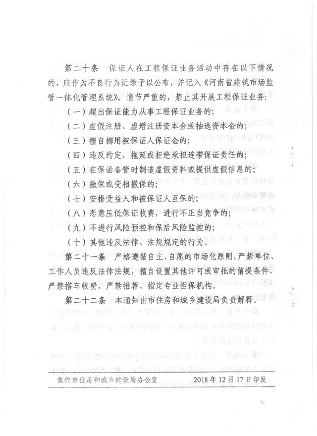 | 焦作市住房和城鄉(xiāng)建設(shè)局關(guān)于印發(fā)《焦作市建設(shè)工程保證制度實施辦法(試行)》的通知 |