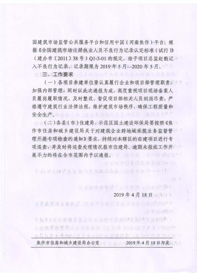 焦作市住房和城鄉(xiāng)建設(shè)局關(guān)于對(duì)三月份建筑業(yè)企業(yè)承攬業(yè)務(wù)專項(xiàng)執(zhí)法檢查情況的通報(bào)
