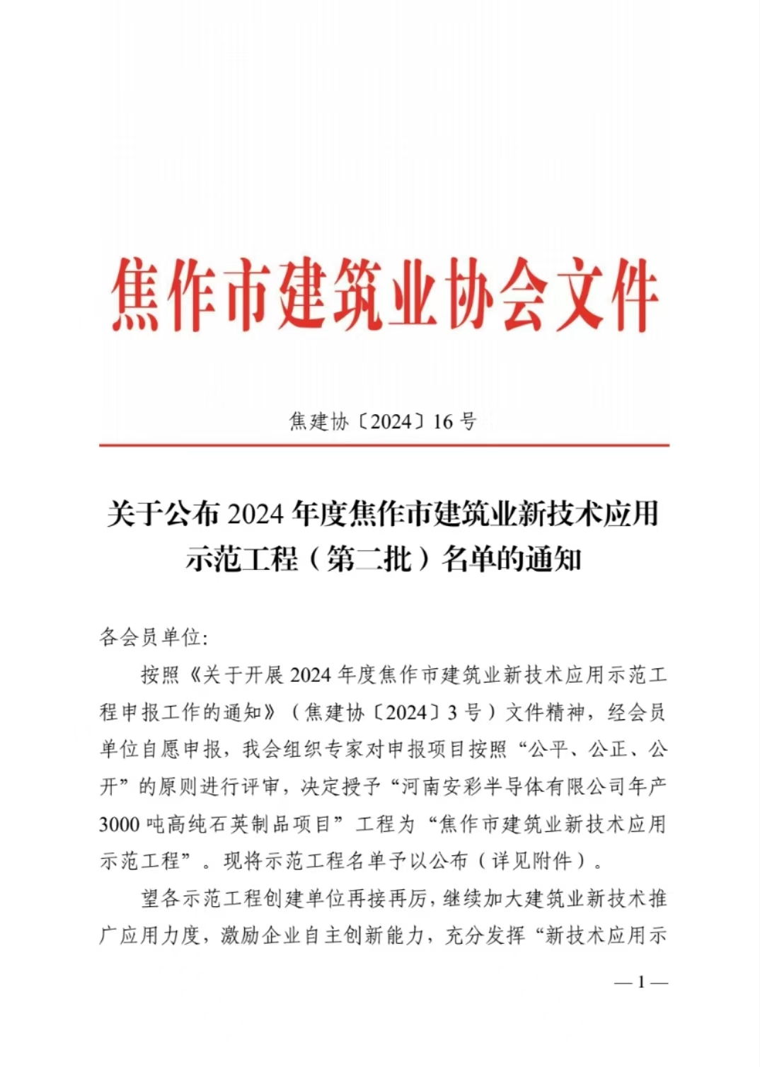 關(guān)于公布2024年度焦作市建筑業(yè)新技術(shù)應(yīng)用示范工程(第二批)名單的通知
